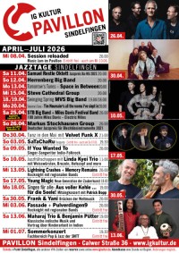 Unter dem Motto „25 Jahre Jörg Gebhardt und die MVS Big Band“ lädt Sie die Big Band zu einer besonderen Ausgabe des Swinging Spring ein. Im Rahmen der Sindelfinger Jazztage verwandelt sich der Pavillon in eine Bühne für ein außergewöhnliches Tribute-Konzert, das das Beste aus einem Vierteljahrhundert Bandgeschichte feiert.