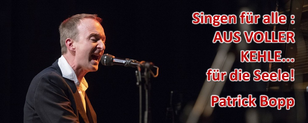 Das Mitsing-Konzert „Aus voller Kehle für die Seele“ richtet sich an alle Menschen, die gerne singen! Patrick Bopp alias Memphis der Vocalband "Füenf" gibt den musikalischen Moderator am Klavier, singt vor und motiviert. Jeder kann Vorschläge machen, die vielleicht sogar sofort umgesetzt werden können.